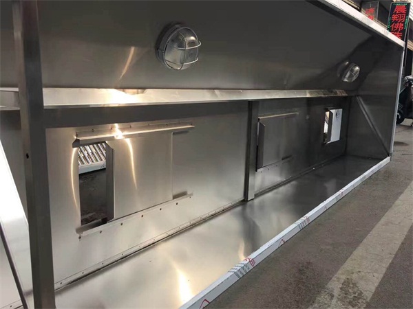 鐵制排煙罩僅為一矩形鐵制罩子,上開(kāi)一孔接排煙管,罩在灶臺(tái)的上方。利用熱空氣上升的原理使油煙自然抽出室外。該種排煙罩工藝簡(jiǎn)單,成本低廉,但排煙效果較差,只適用于煙霧不大的小型飲食場(chǎng)所。目前沒(méi)有定型產(chǎn)品,而是根據(jù)灶具的大小現(xiàn)場(chǎng)制作。